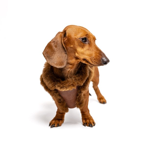 A partir de 110 €Notre gilet en fausse fourrure ultra douce conçu spécialement pour les teckels est très chic et confortable. Grâce à sa fermeture type harnais, il s’enfile en un geste et offre un maintien parfait. Pas besoin d’un collier ou harnais, il suffit d’accrocher la laisse directement sur le gilet. Le gilet […]