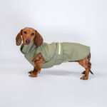 The raincoat features elastic straps for the legs to keep the coat securely in place. If your dachshund doesn’t like the elastics, they can be shortened to the minimum or simply not used.
