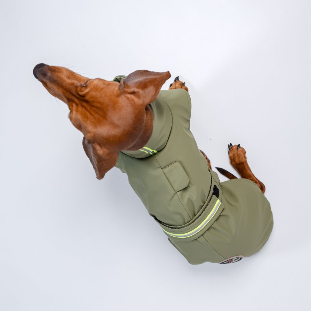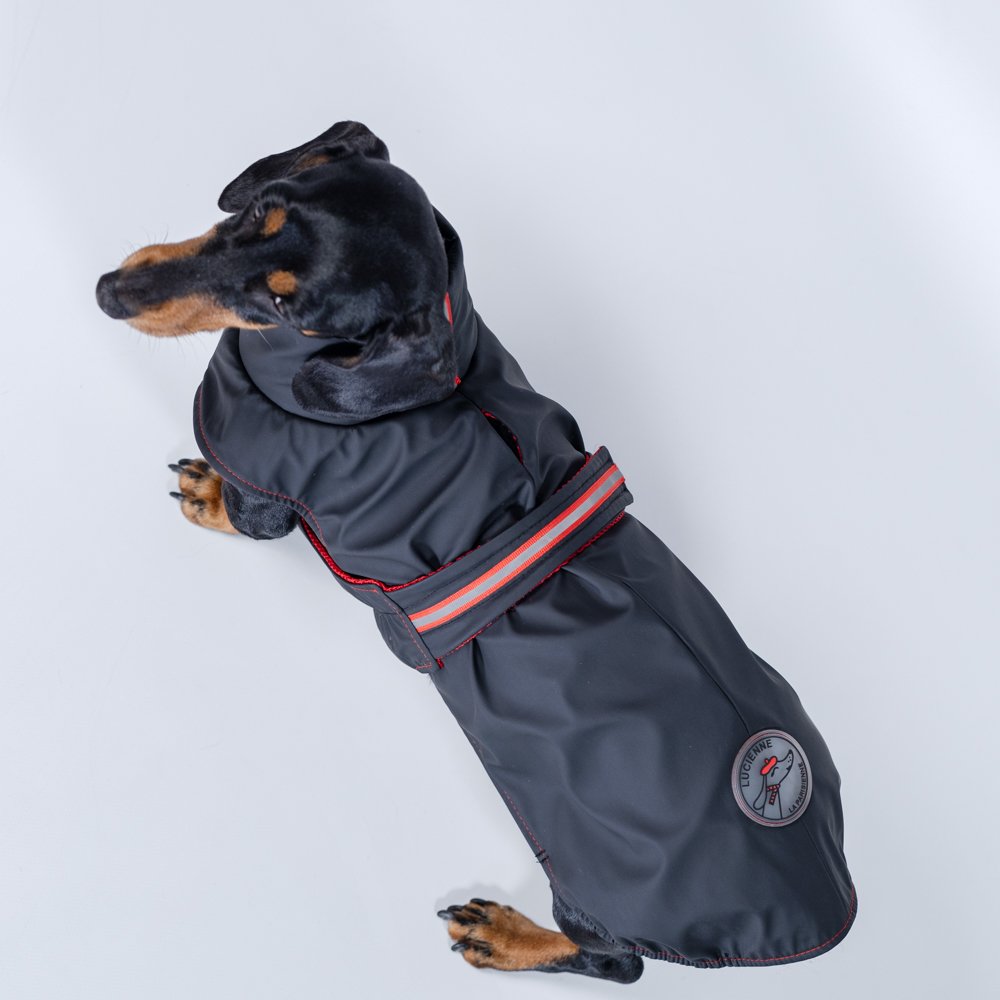 The raincoat effectively protects against rain and wind while remaining comfortable for your dachshund.
