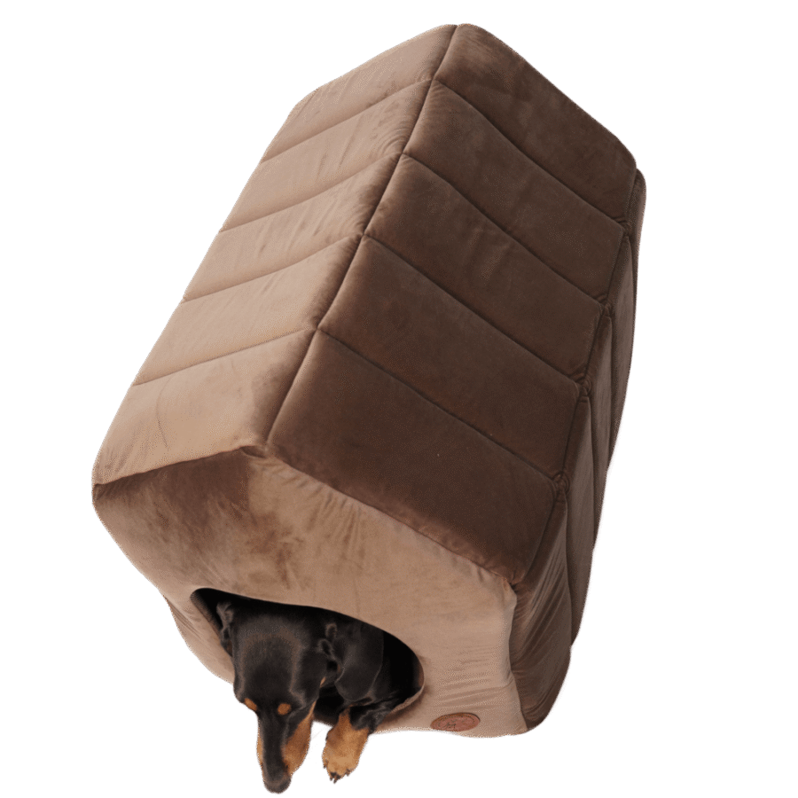 The "Villa Lucienne" allows them to rest, store toys, hide sometimes stolen trophies, chew a bone or other treat, feel warm, and imagine being in a dog house. Dachshunds, in particular, have instincts to dig and nest when they prepare to sleep.