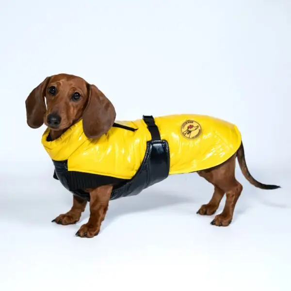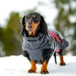 La matière est déperlante, la doudoune est bien chaude et sera parfaite pour les teckels frileux ou qui aiment passer leurs vacances aux sports d’hiver ! Enfin votre teckel peut bien profiter de la neige!