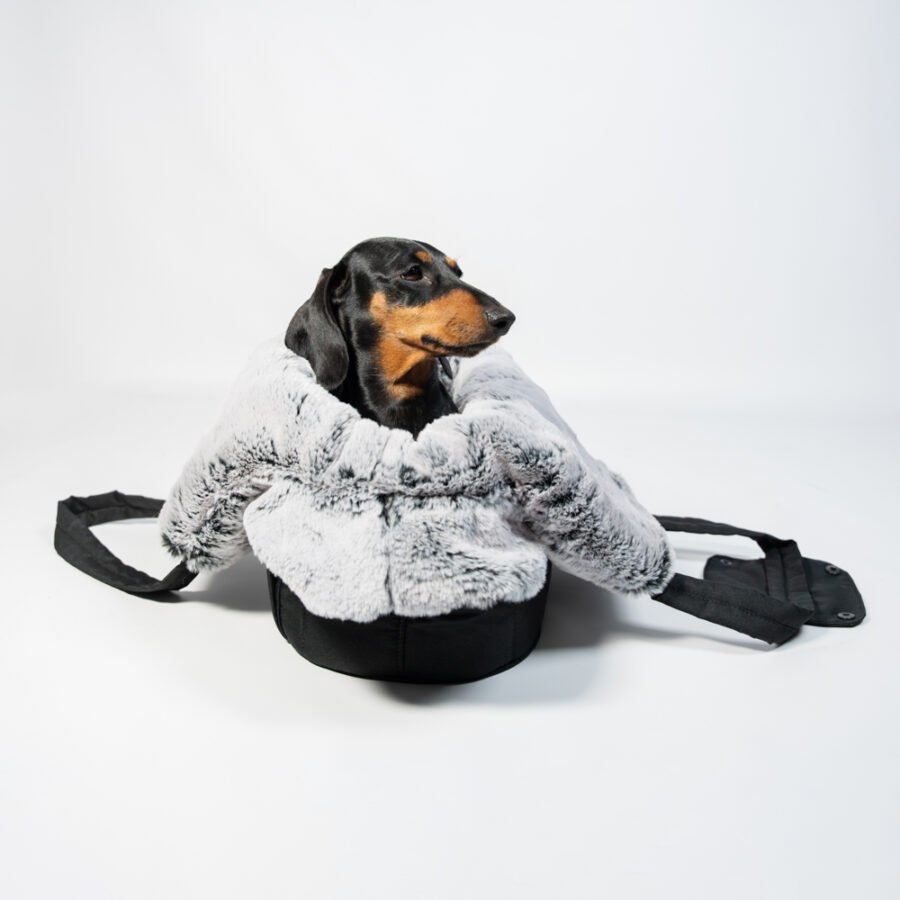 La housse est faite en fourrure synthétique lavable, douce et chaude. Votre chien sera bien au chaud comme dans un Cocoon mobile.